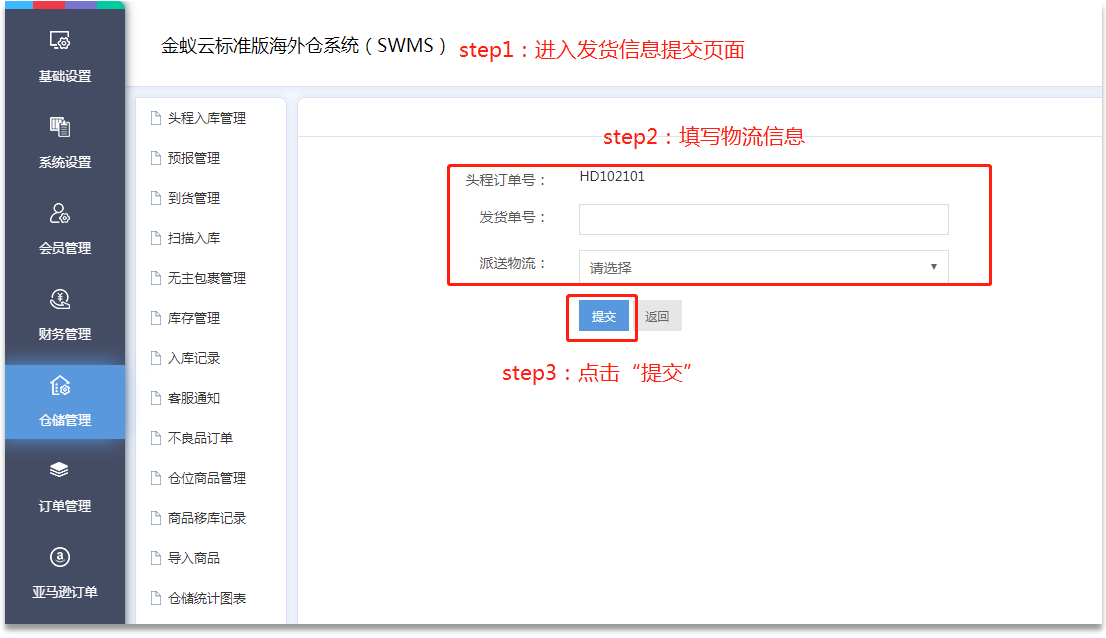 頭程訂單發(fā)貨提交頁面