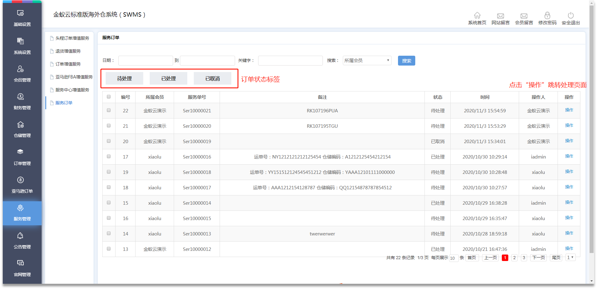 海外倉(cāng)系統(tǒng)標(biāo)準(zhǔn)版(管理端)操作說(shuō)明:增值服務(wù)處理