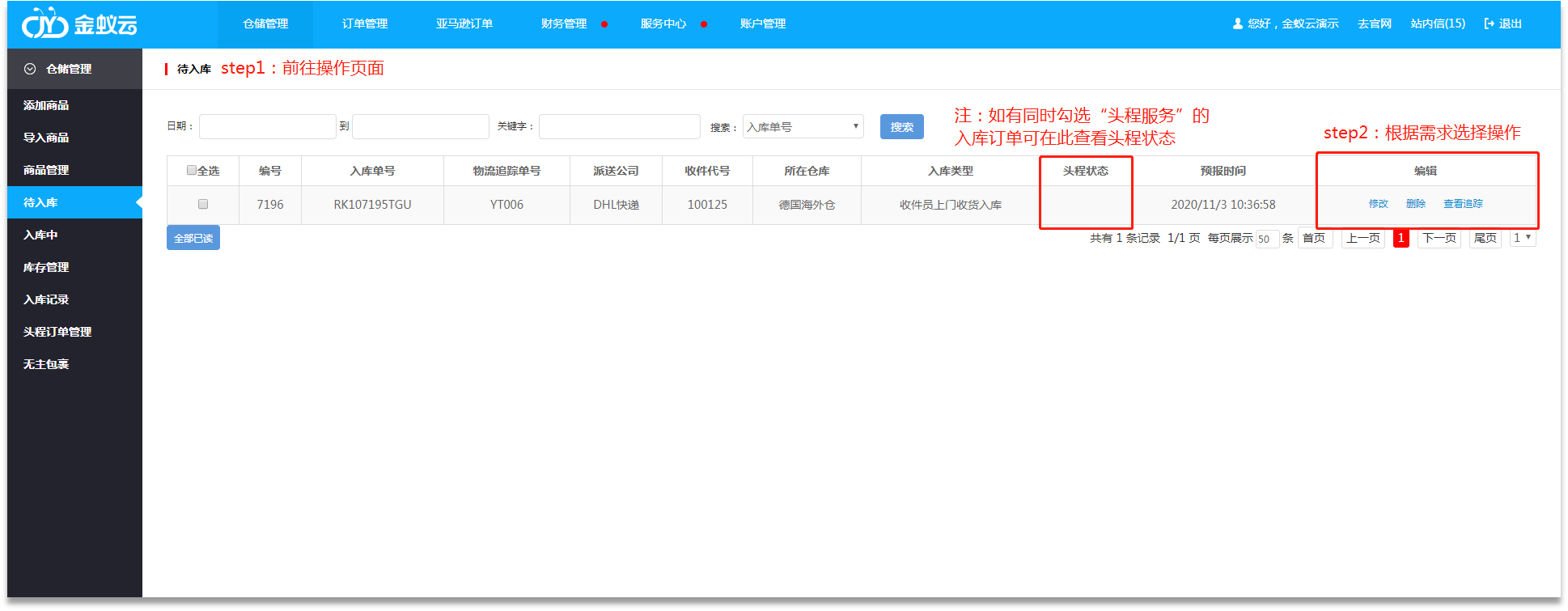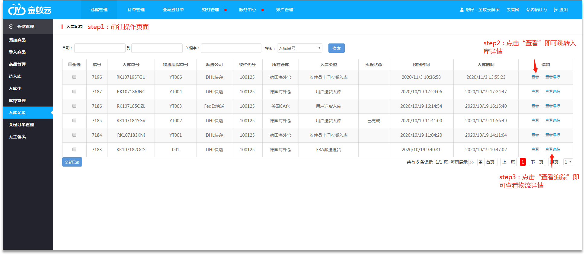 海外倉(cāng)  海外倉(cāng)系統(tǒng)說明  海外倉(cāng)系統(tǒng)  海外倉(cāng)入庫(kù)查詢操作  入庫(kù)查詢  WMS系統(tǒng)  會(huì)員操作  操作教程