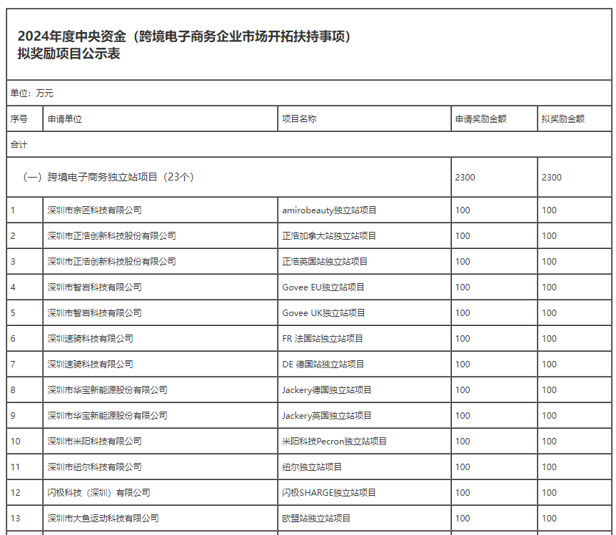 小編據(jù)悉:截止2024年,連續(xù)5年,深圳對(duì)海外倉(cāng)企業(yè)、跨境電商獨(dú)立站的企業(yè),每年都有100-1000萬(wàn)不等的補(bǔ)貼。